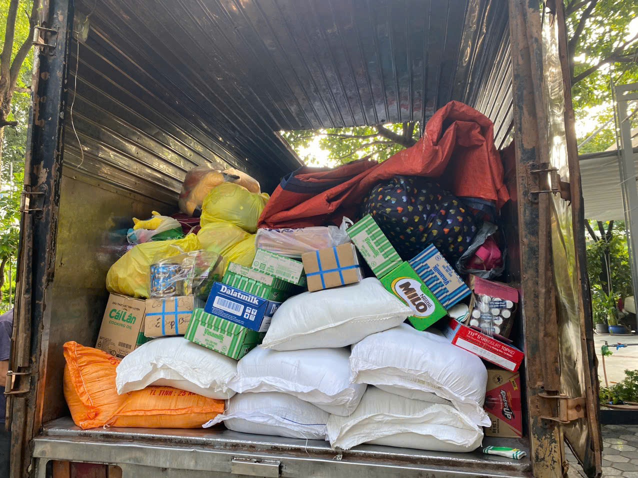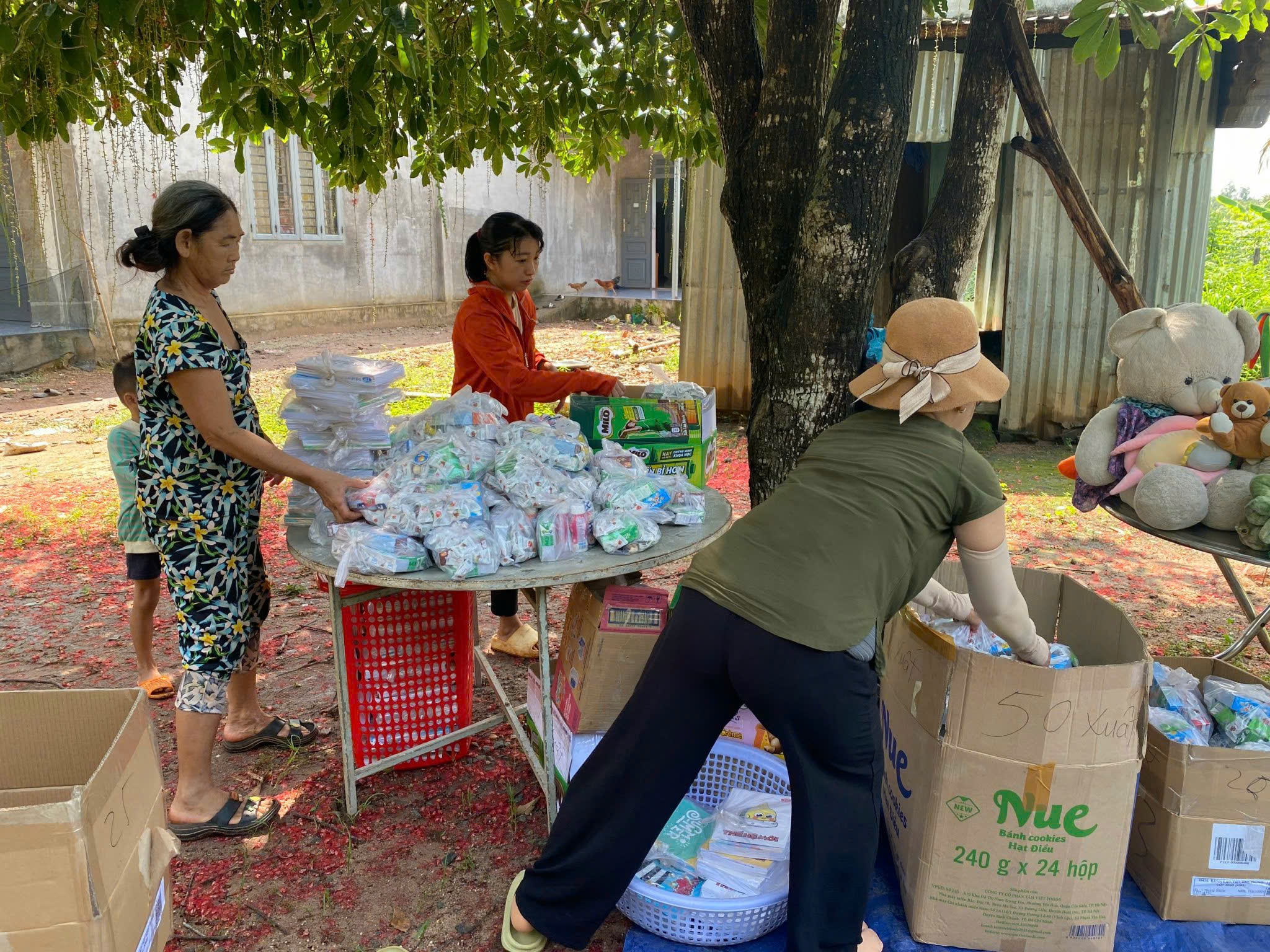 Tập kết những món đồ thiện nguyện mà phụ huynh gửi đến tại cơ sở Him Lam