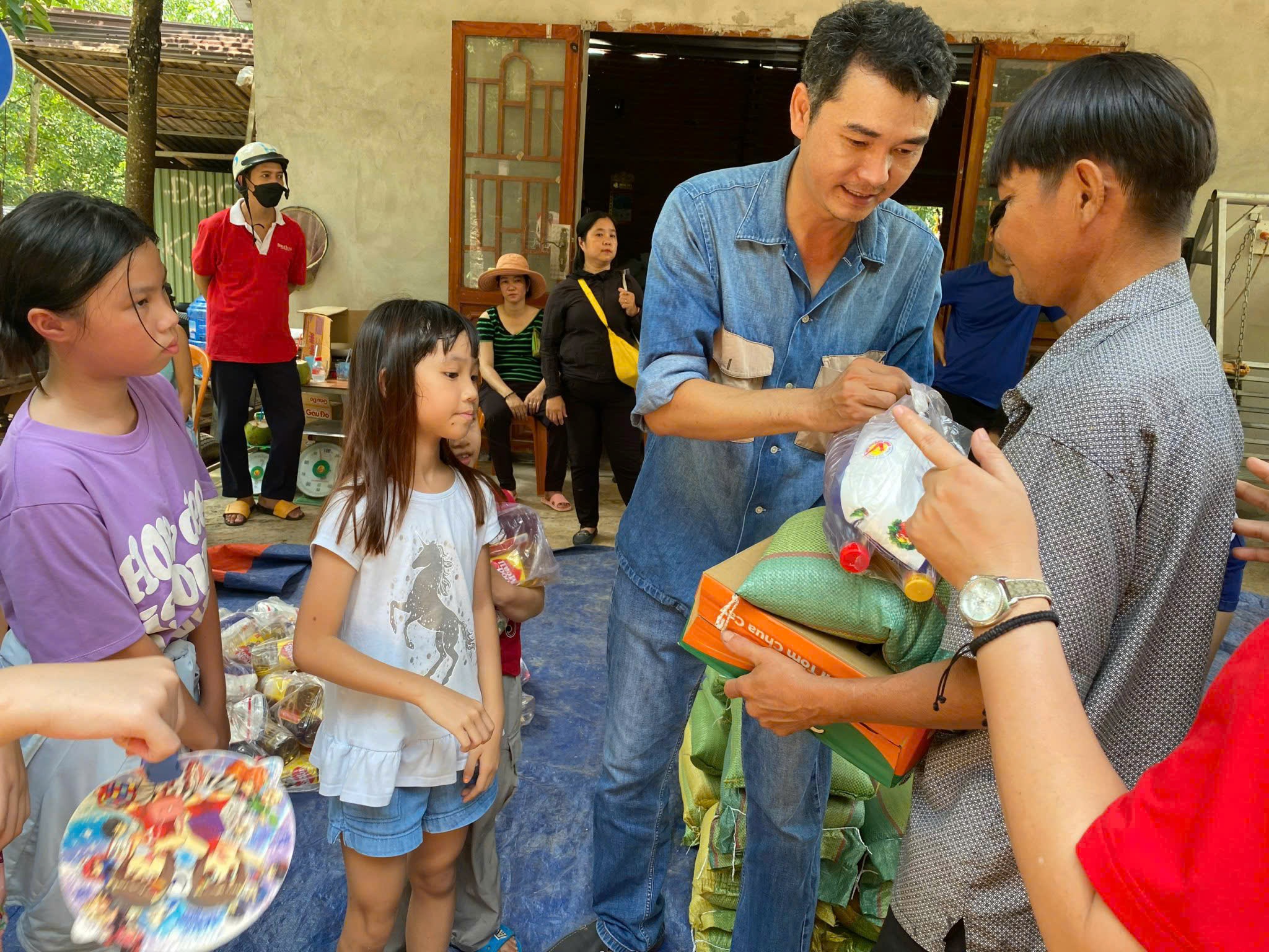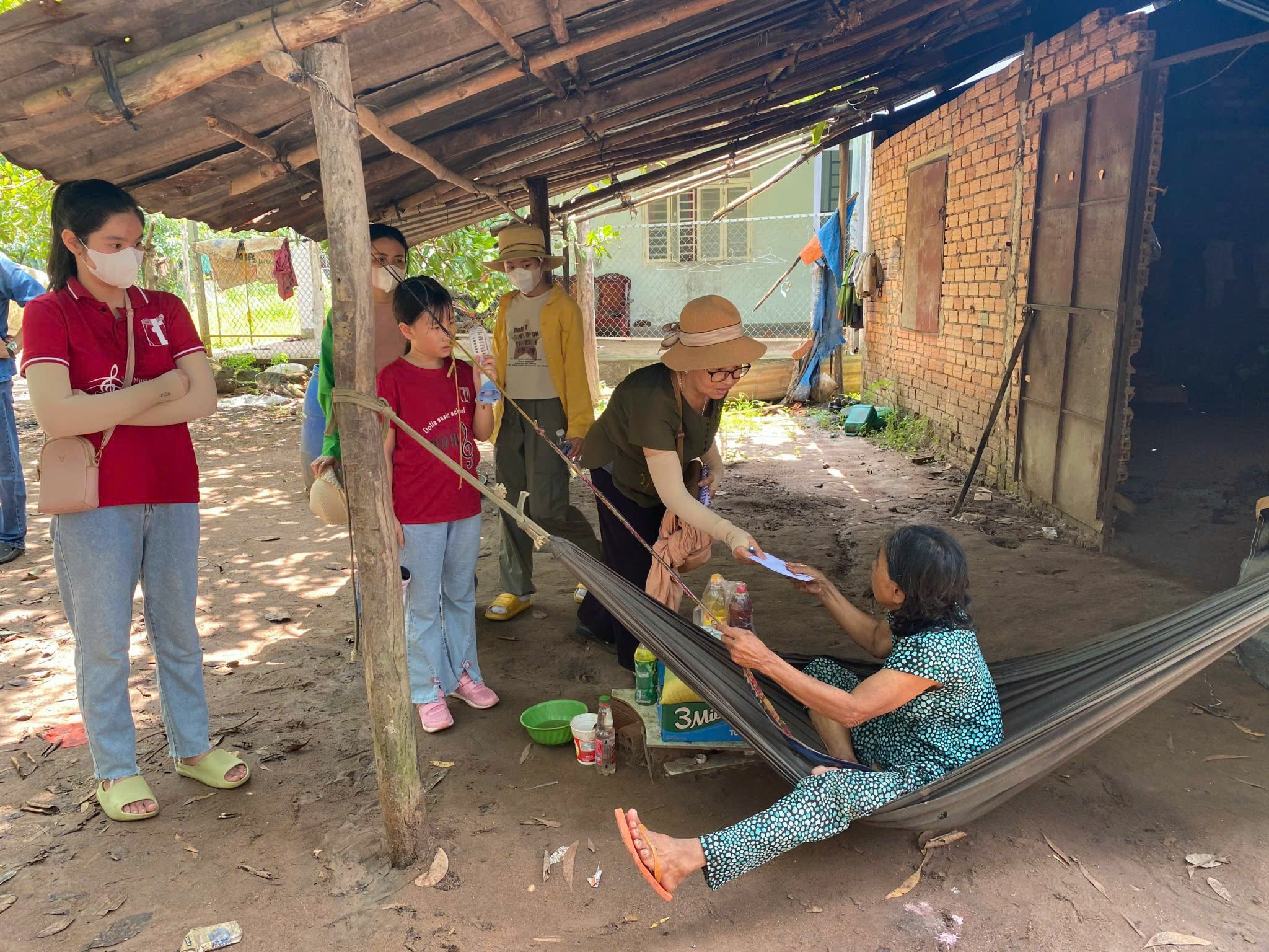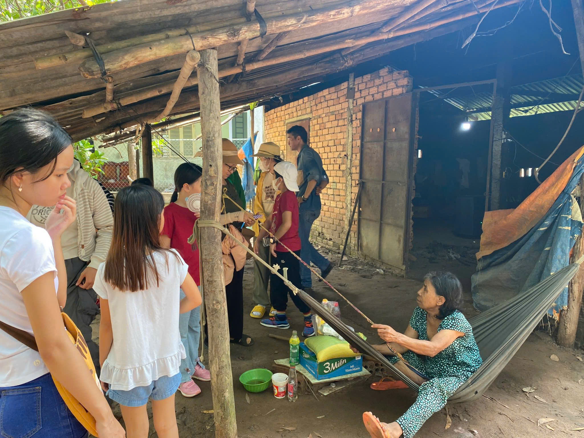 Thầy trò Dolin thăm hỏi vào trao quà cho bà con