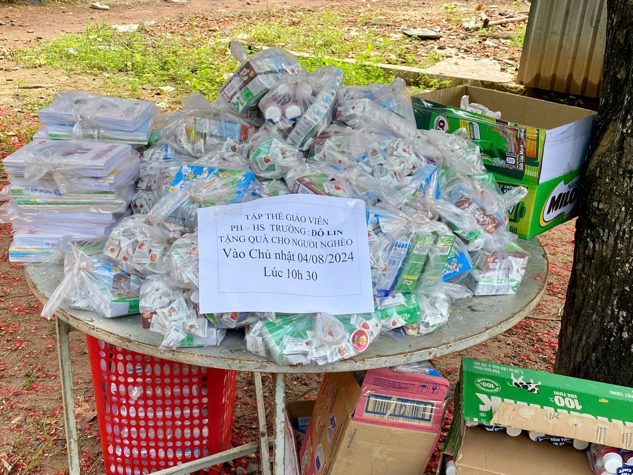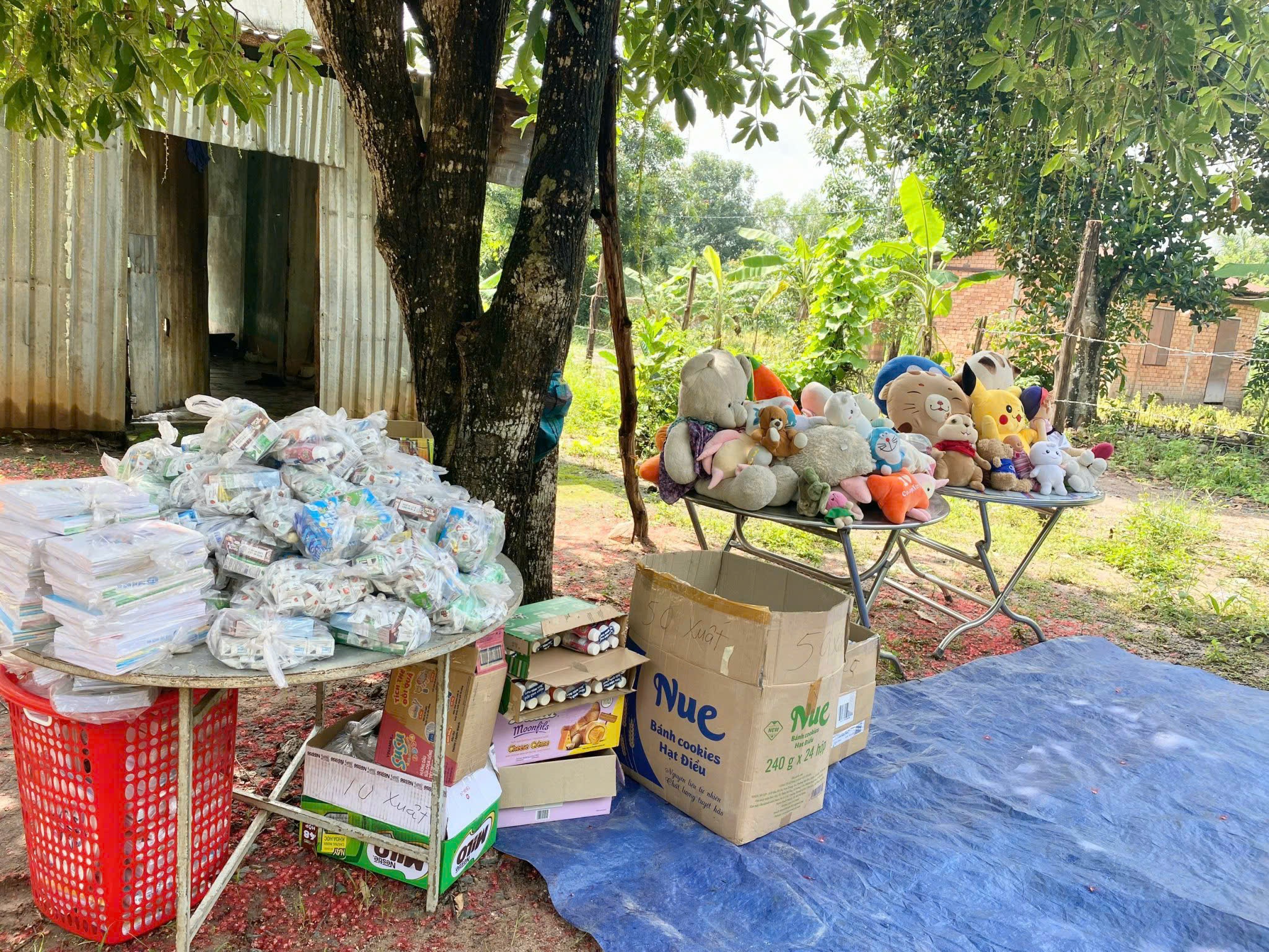 Những phần quà được xếp ngay ngắn và nhanh chóng để có thể sẵn sàng trao đến các hoàn cảnh khó khăn nơi đây
