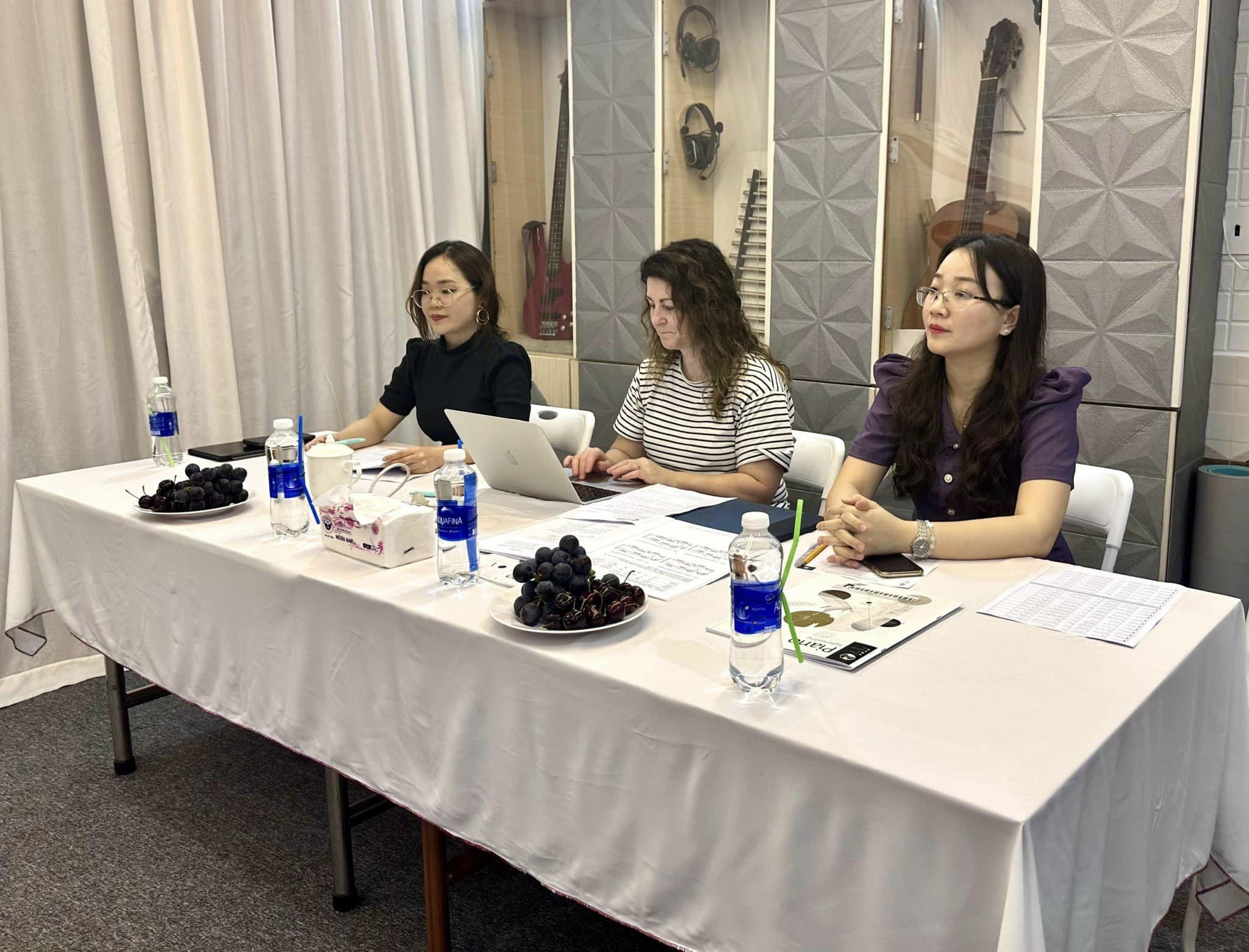 Cô Hiệu trưởng Dolin Music School ThS. Nguyễn Thị Thùy Thương cùng Giám khảo Karen Smithies