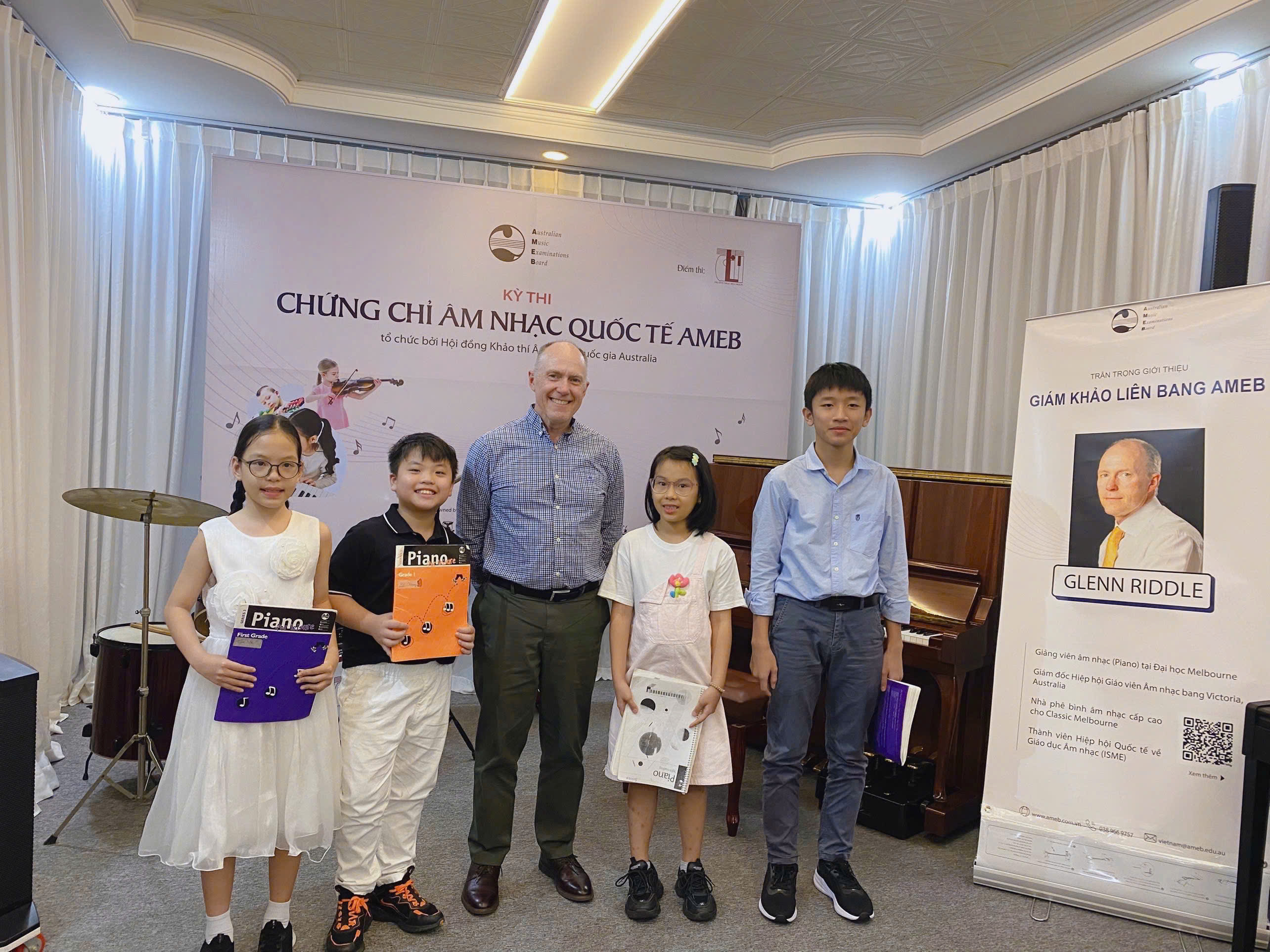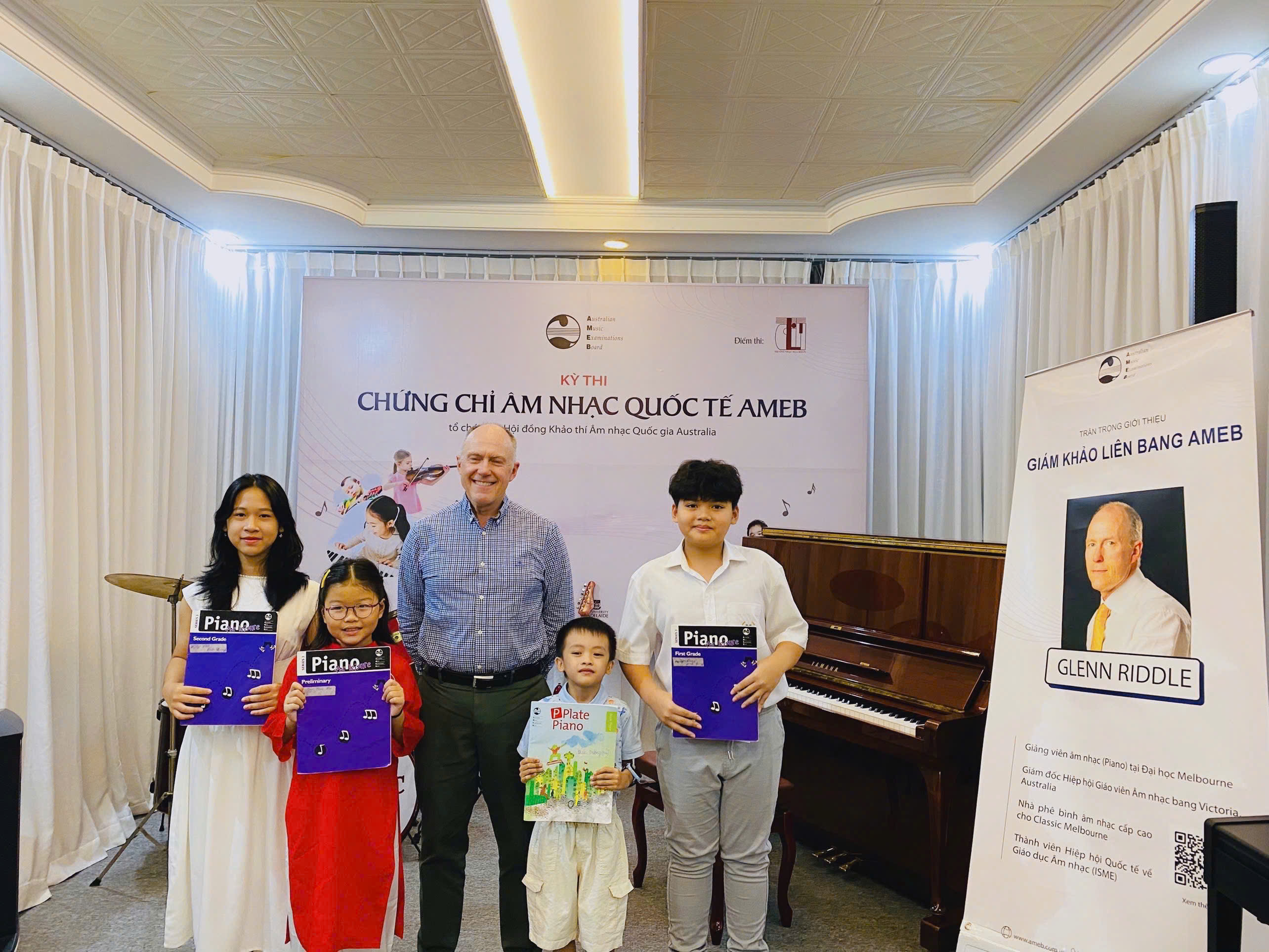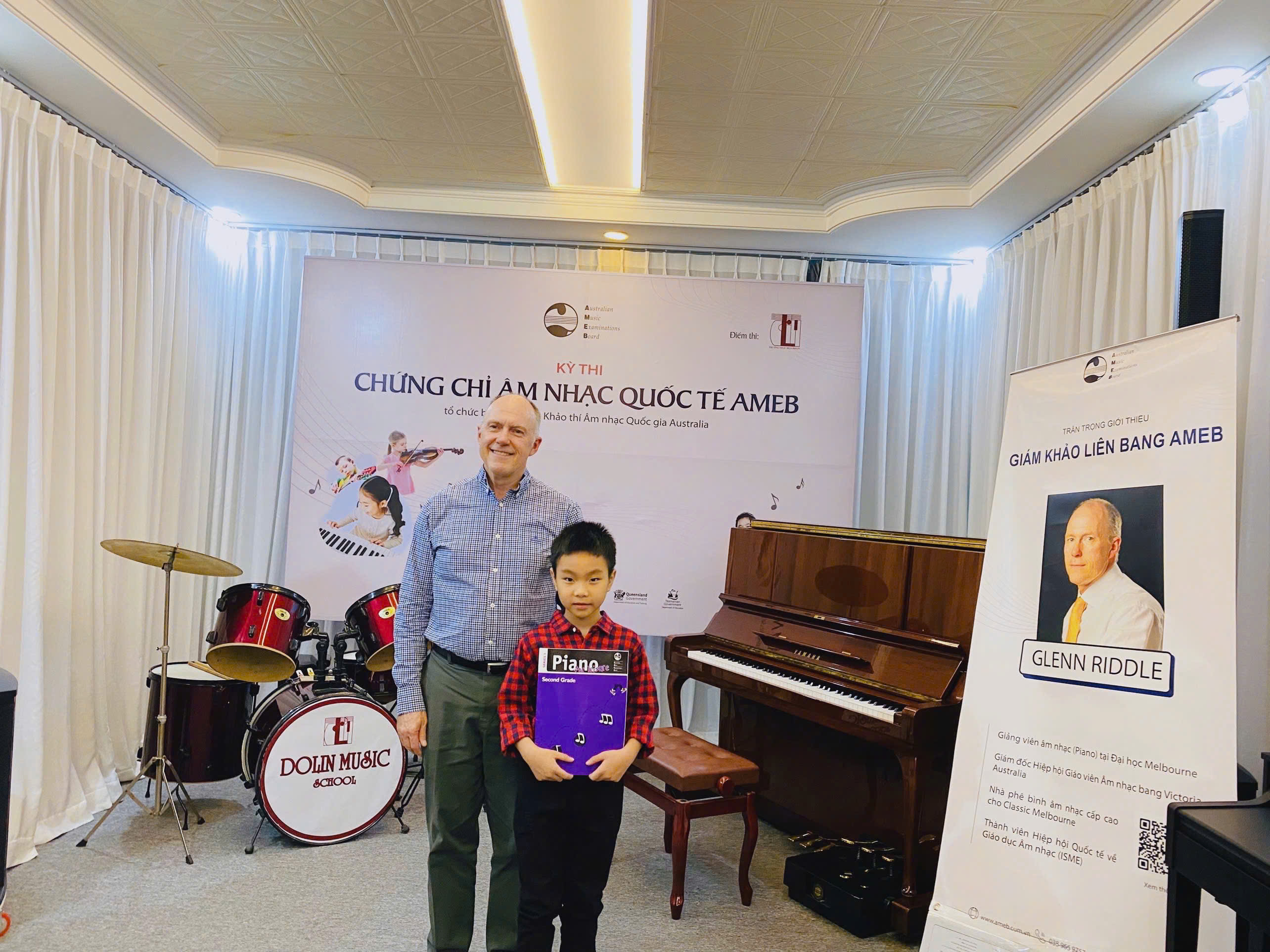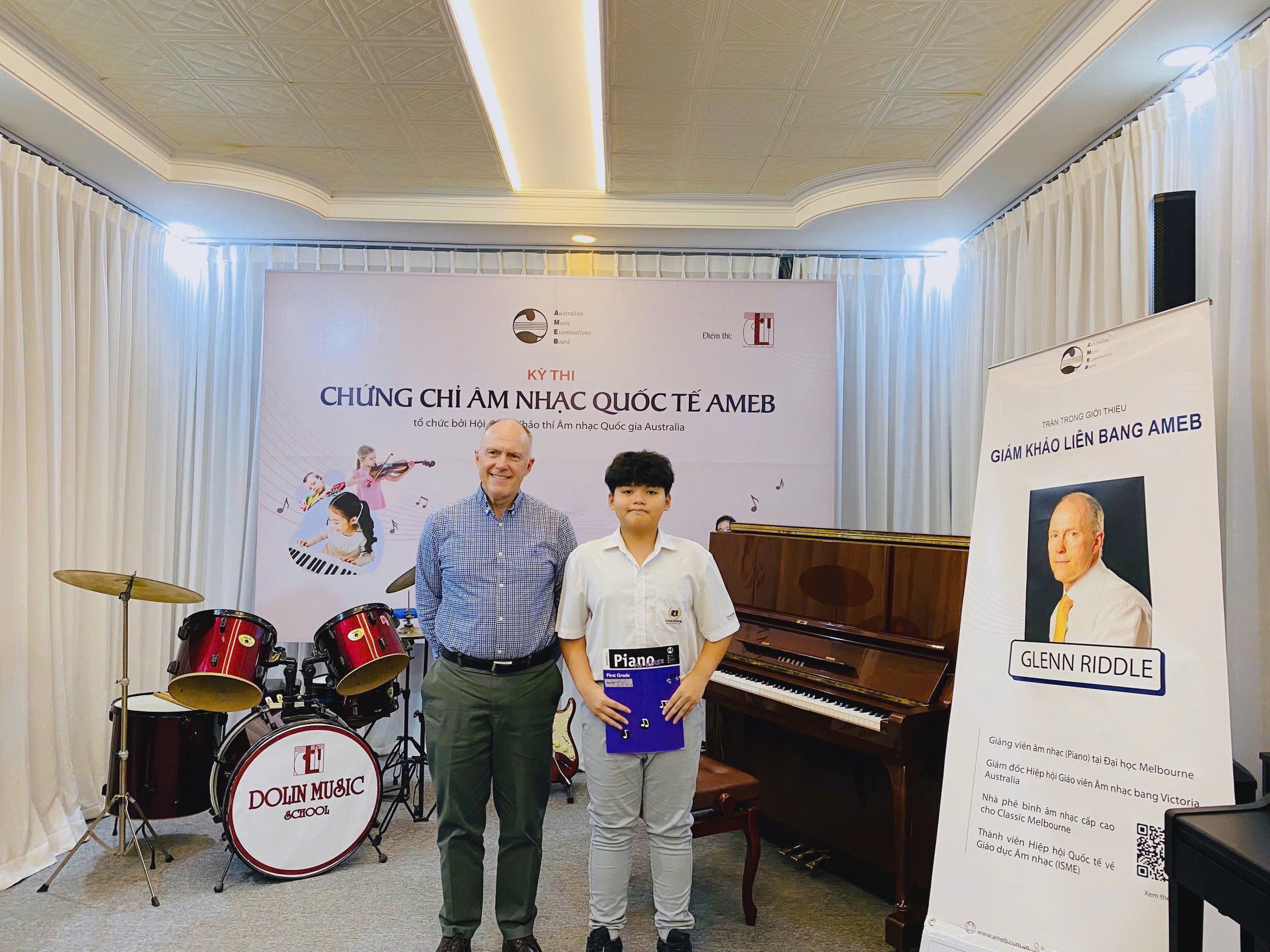 Trong khuôn khổ Kỳ thi Chứng chỉ AMEB 2024 đợt 2, Dolin Music School đã vinh dự đón tiếp TS. Glenn Riddle - hiện là Giám khảo Liên bang AMEB, trợ lý Nghiên cứu tại Đại học Waikato, Giám đốc Hiệp hội Giáo viên Âm nhạc bang Victoria và đại diện cho bang Victoria trong Ủy ban Quốc gia về Hội nghị Sư phạm Piano của Úc. Ông cũng là nhà phê bình Âm nhạc cho ấn phẩm trực tuyến classicmelbourne.com.au