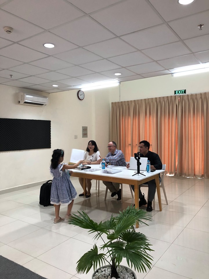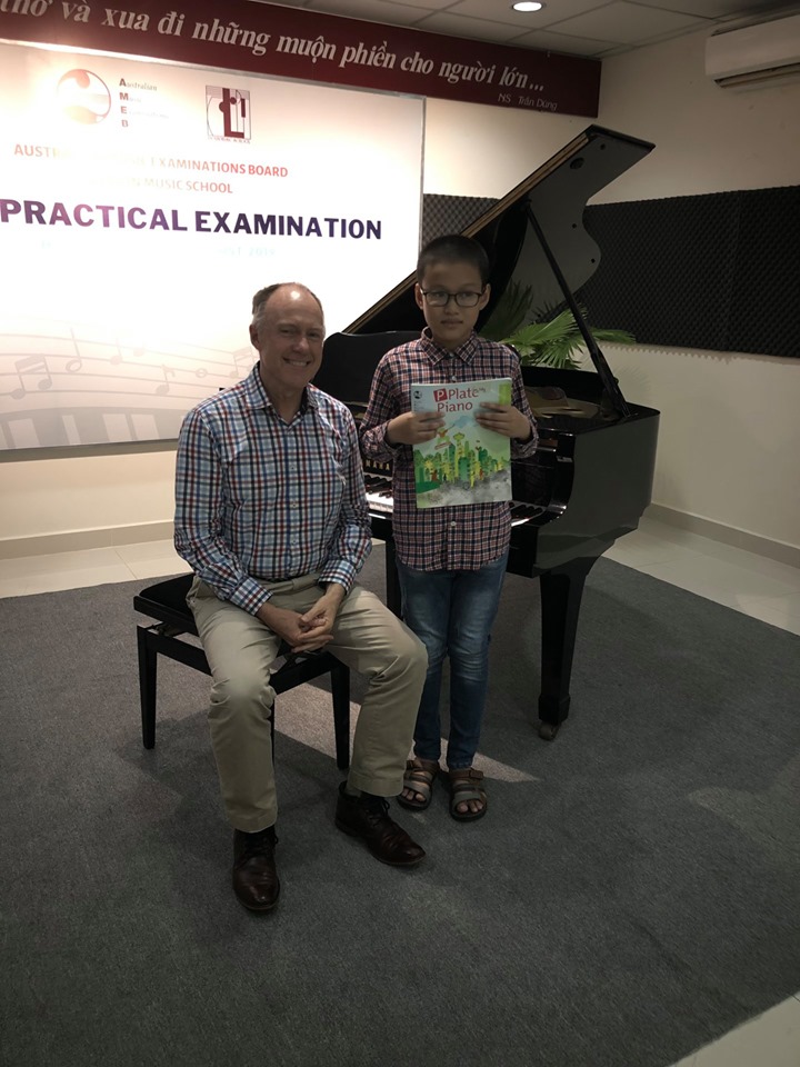 Cô ThS Thùy Thương hiệu trưởng Dolin Music School cùng giám khảo giám khảo Glenn Riddle từ hội đồng chấm thi tại Úc