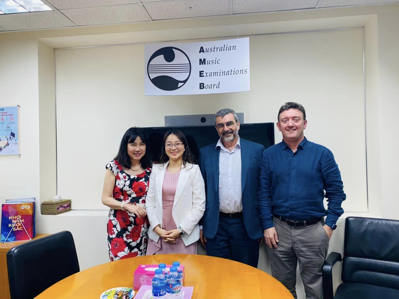 (Buổi gặp gỡ có sự tham gia của 4 đại diện chính gồm cô TS. Nguyễn Thị Thùy Thương - Giám đốc trường Nhạc họa Dolin, ngài Giám đốc AMEB, Cô TS. Tanya Thanh và ngài TS. Brad Merick)